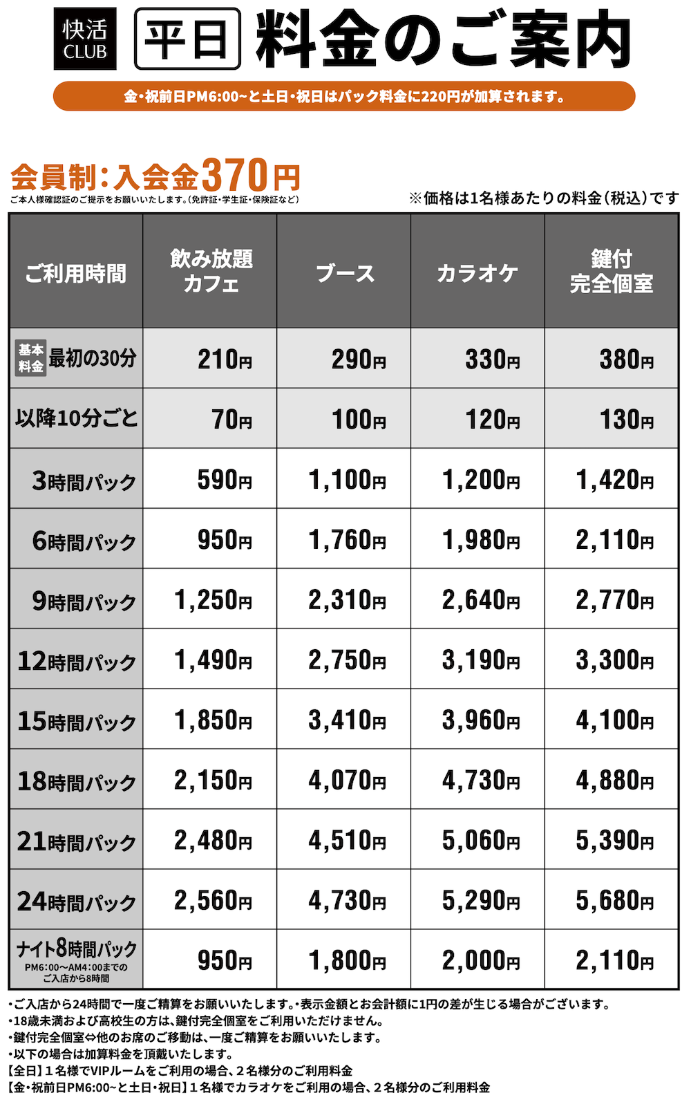 料金表PRICE