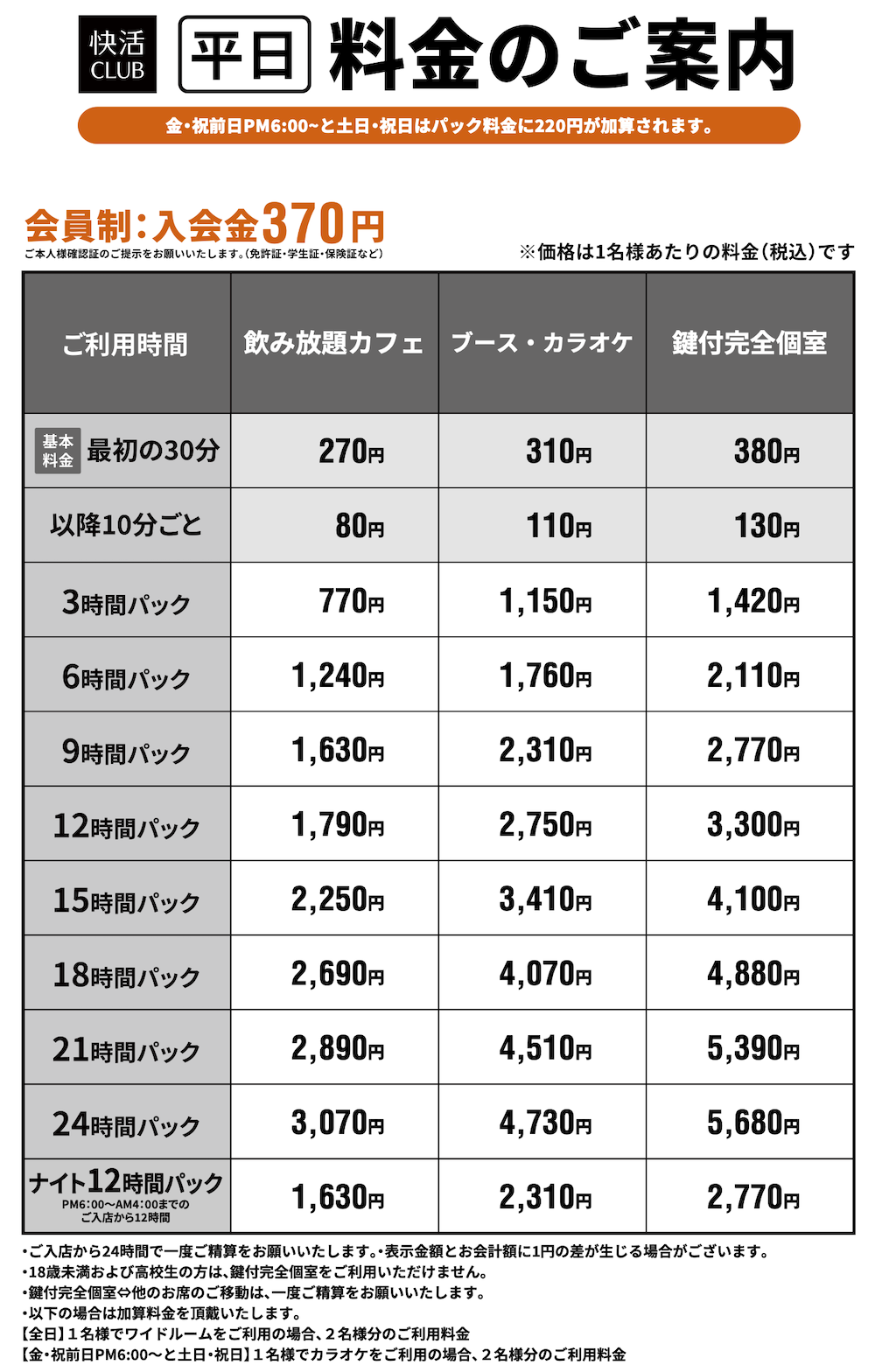 料金表PRICE